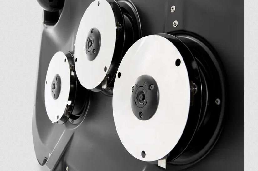 The principle of the cutting system is based on the grass surface being mowed regularly. This means that each blade of grass is cut very little at a time but often, which guarantees a strong, nice-looking and healthy turf. The robust cutting discs are equipped with sharp razor-like blades made of strong carbon steel. This provides efficient operation and extremely low energy consumption.