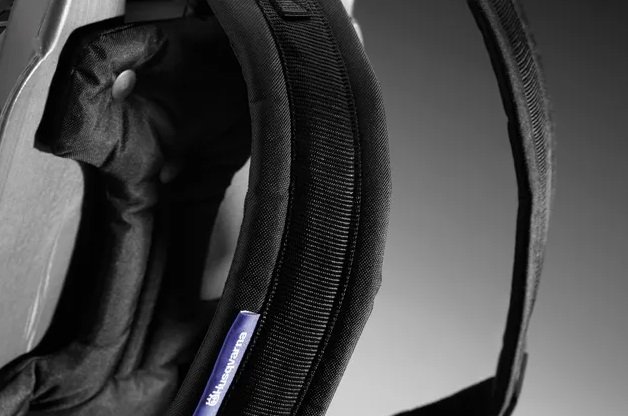 Comfortable, ventilated and load-reducing harness with wide shoulder straps.