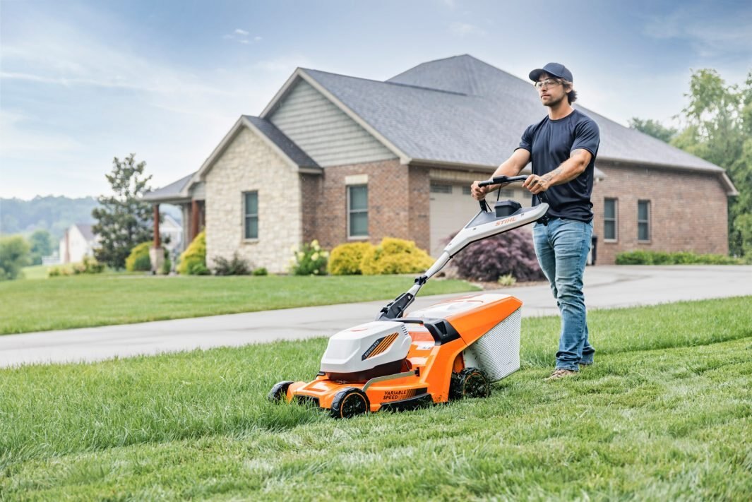 RMA 453 PV Battery Lawn Mower: A self‑propelled mower with a mono‑comfort handlebar, integrated mulch flap, and intuitive HMI control panel for effortless operation The STIHL RMA 453 PV battery lawn mower combines a 20" cutting width with Vario wheel drive to make mowing medium‑sized lawns and sloped areas noticeably easier for home gardeners. With the digital HMI control panel, you can adjust your mowing sp...
