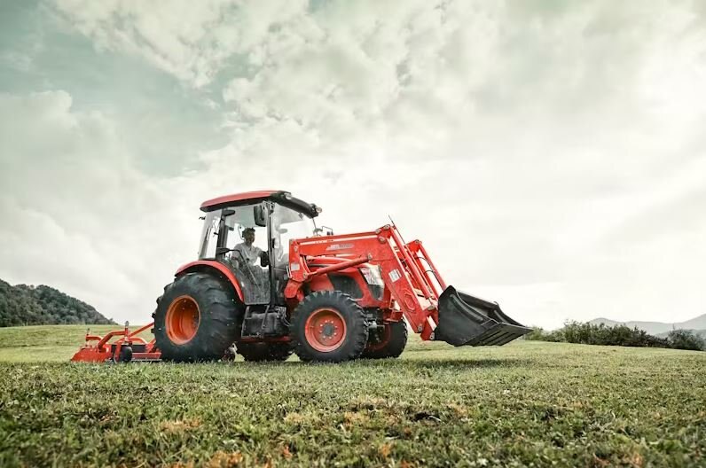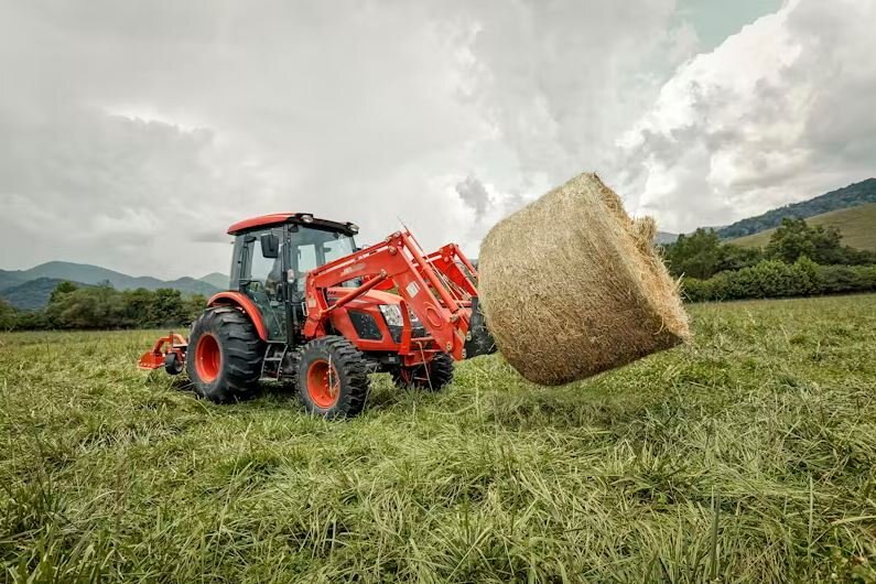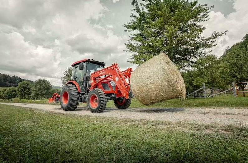 | A utility tractor with a comfortable cab offering a serious power upgrade to haul hay and maintain livestock. |